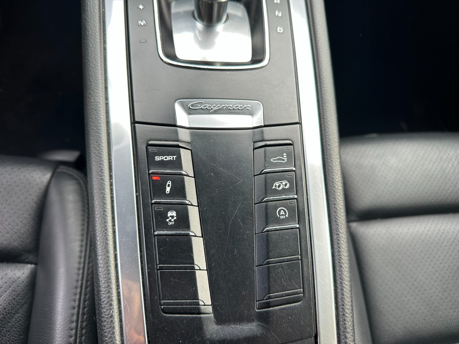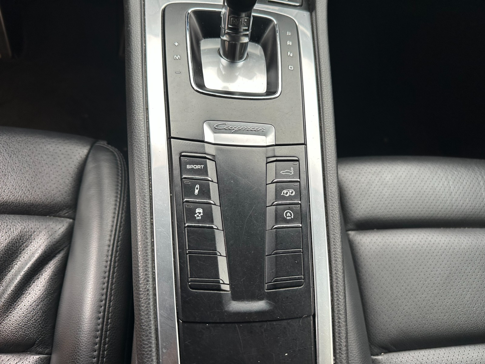 Plaquette portant l'inscription Cayman devant le levier de vitesse