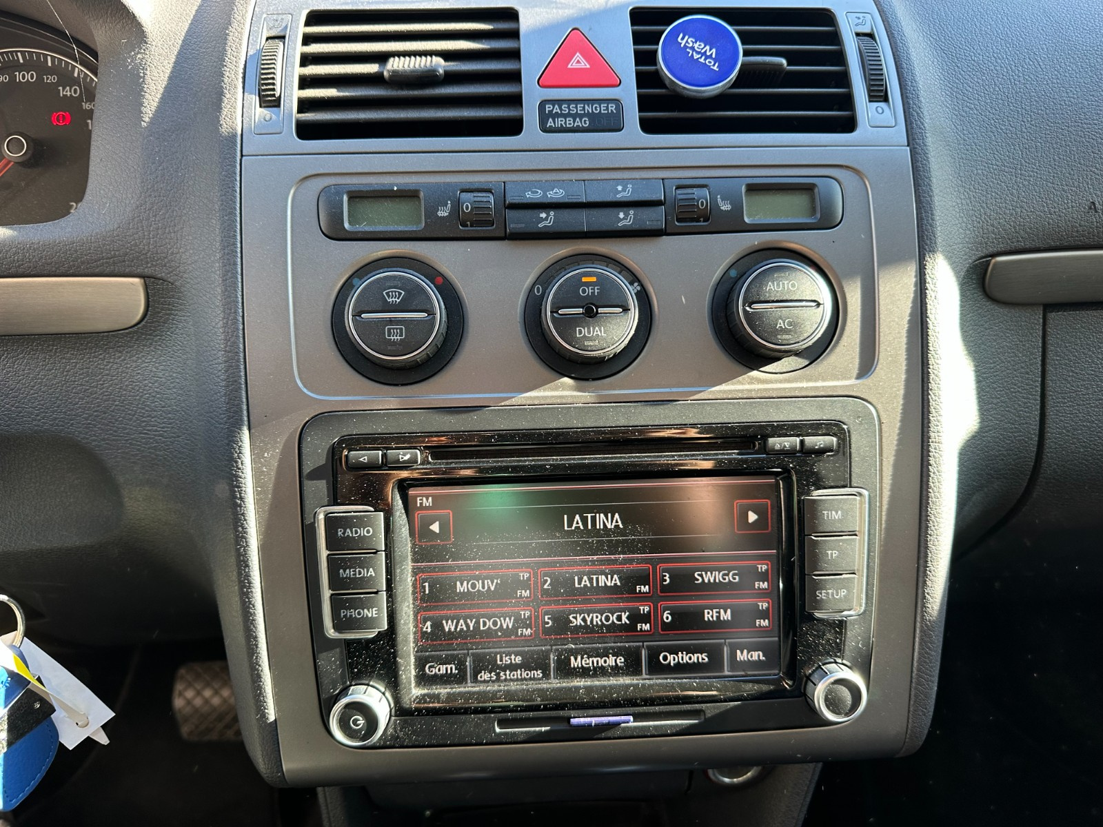 Compartiment de rangement central avec 2 porte-boissons au-dessus de la planche de bord