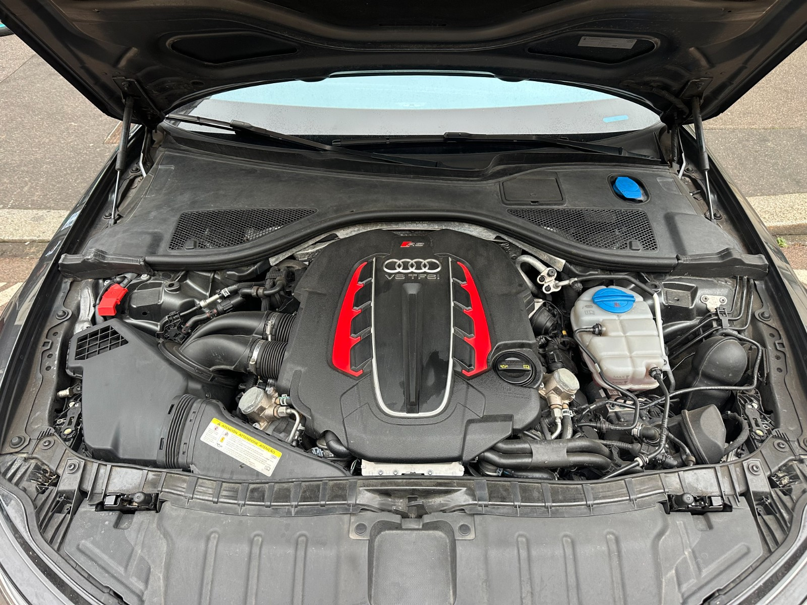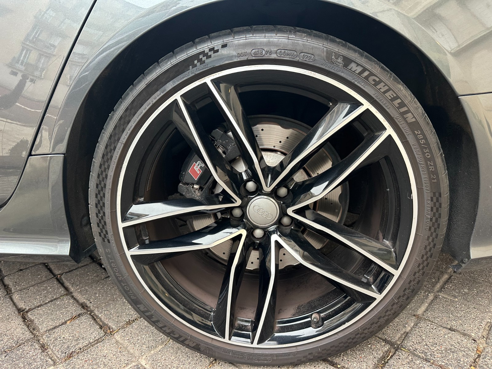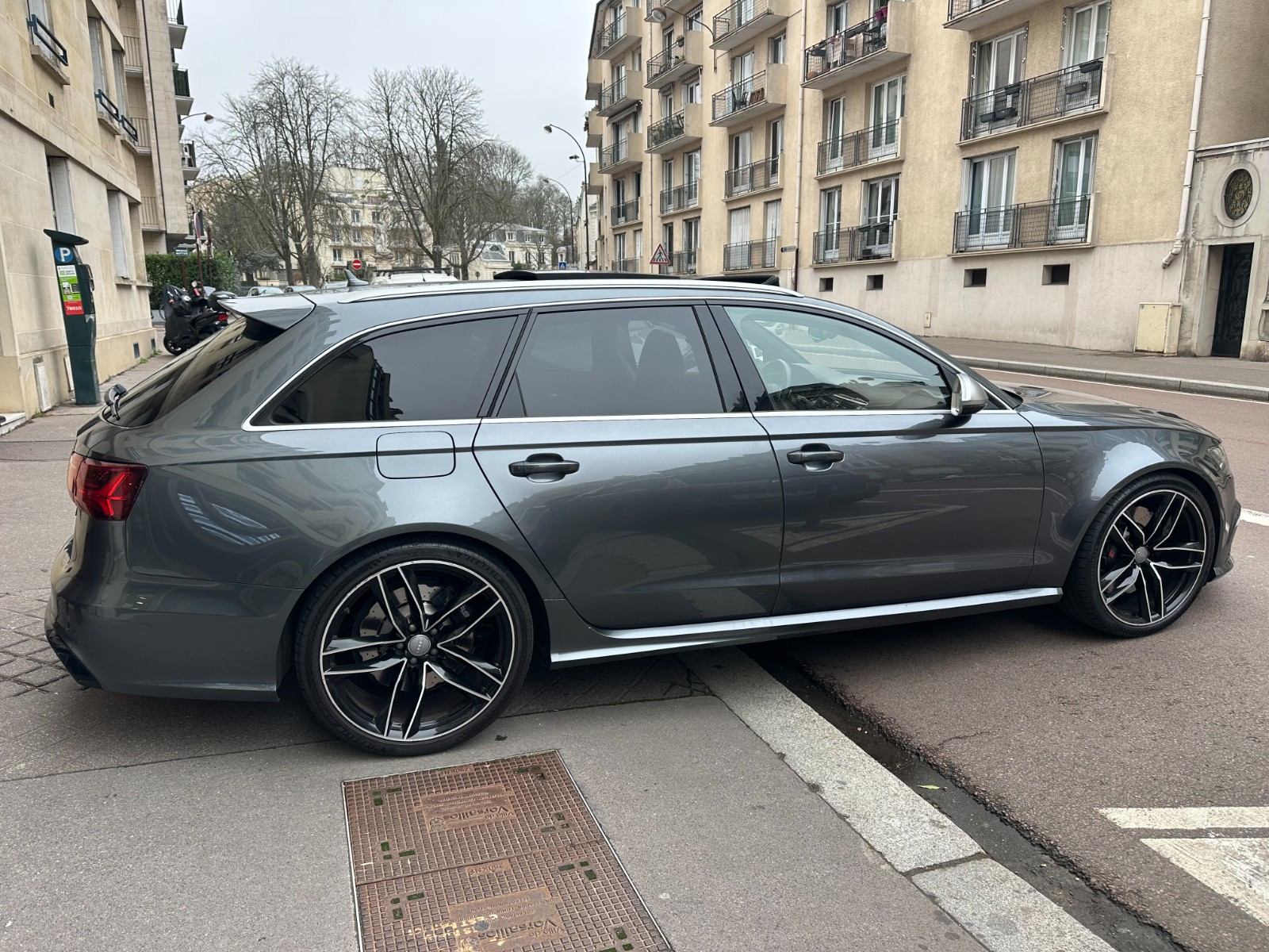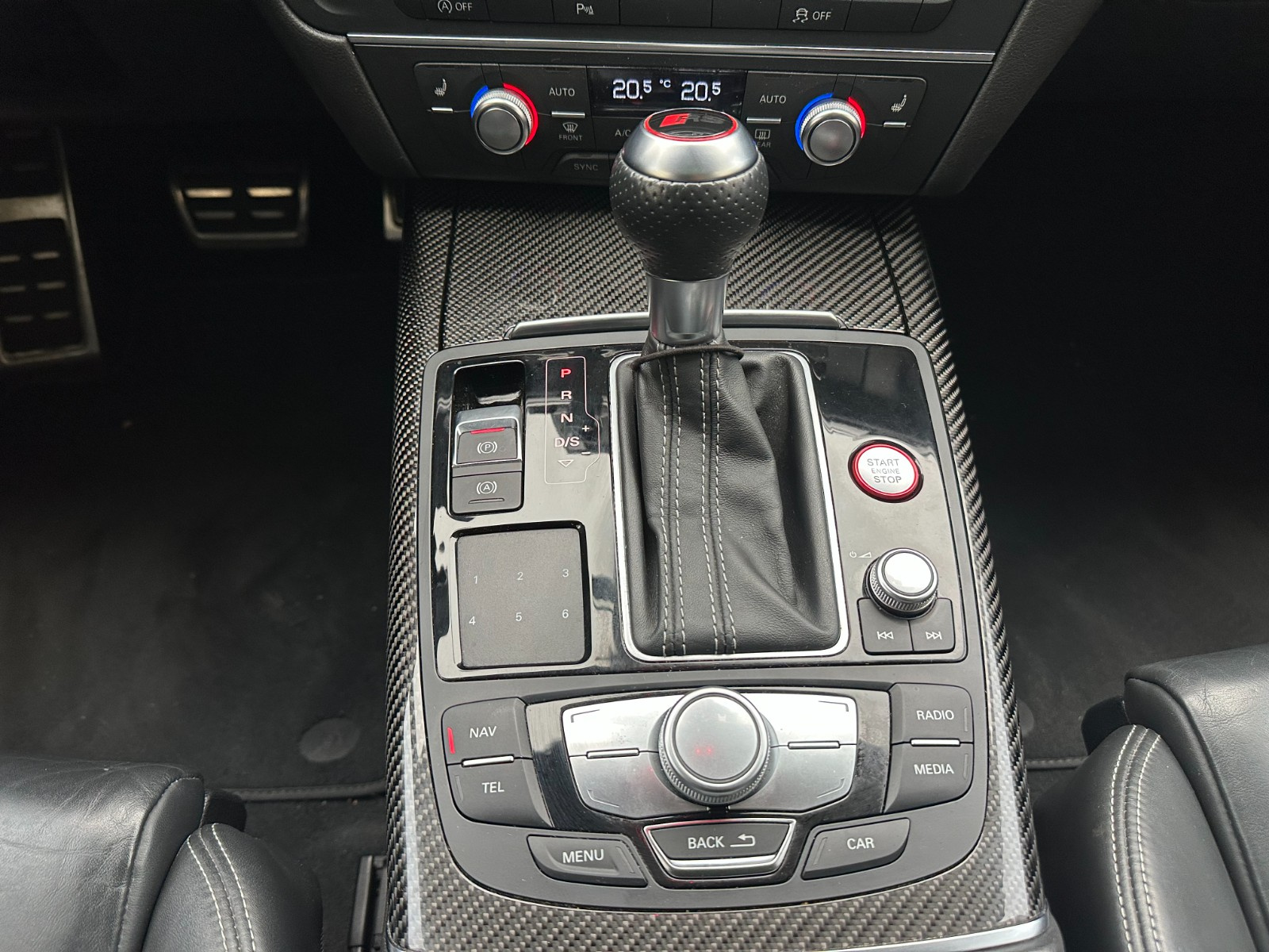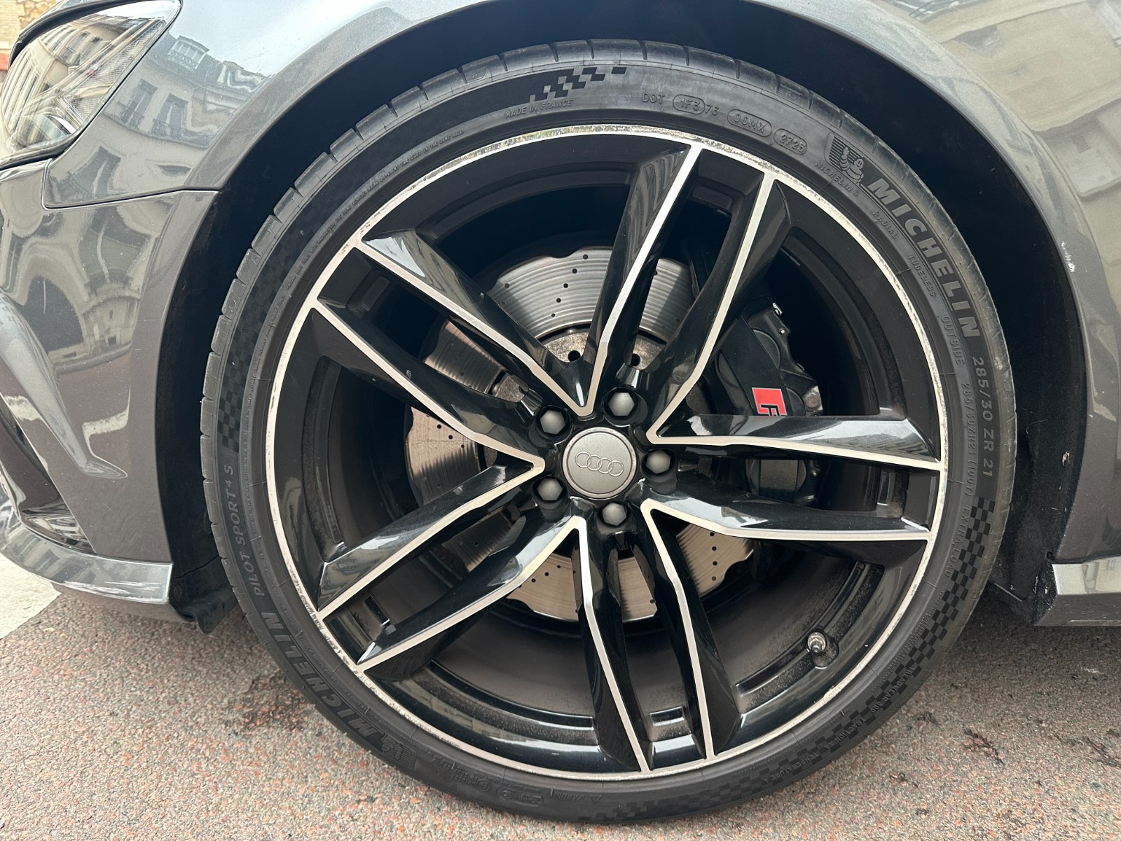 Inscription « RS6 » sur la calandre, le capot de coffre, les étriers de frein AV, le volant Sport en cuir et le tachymètre