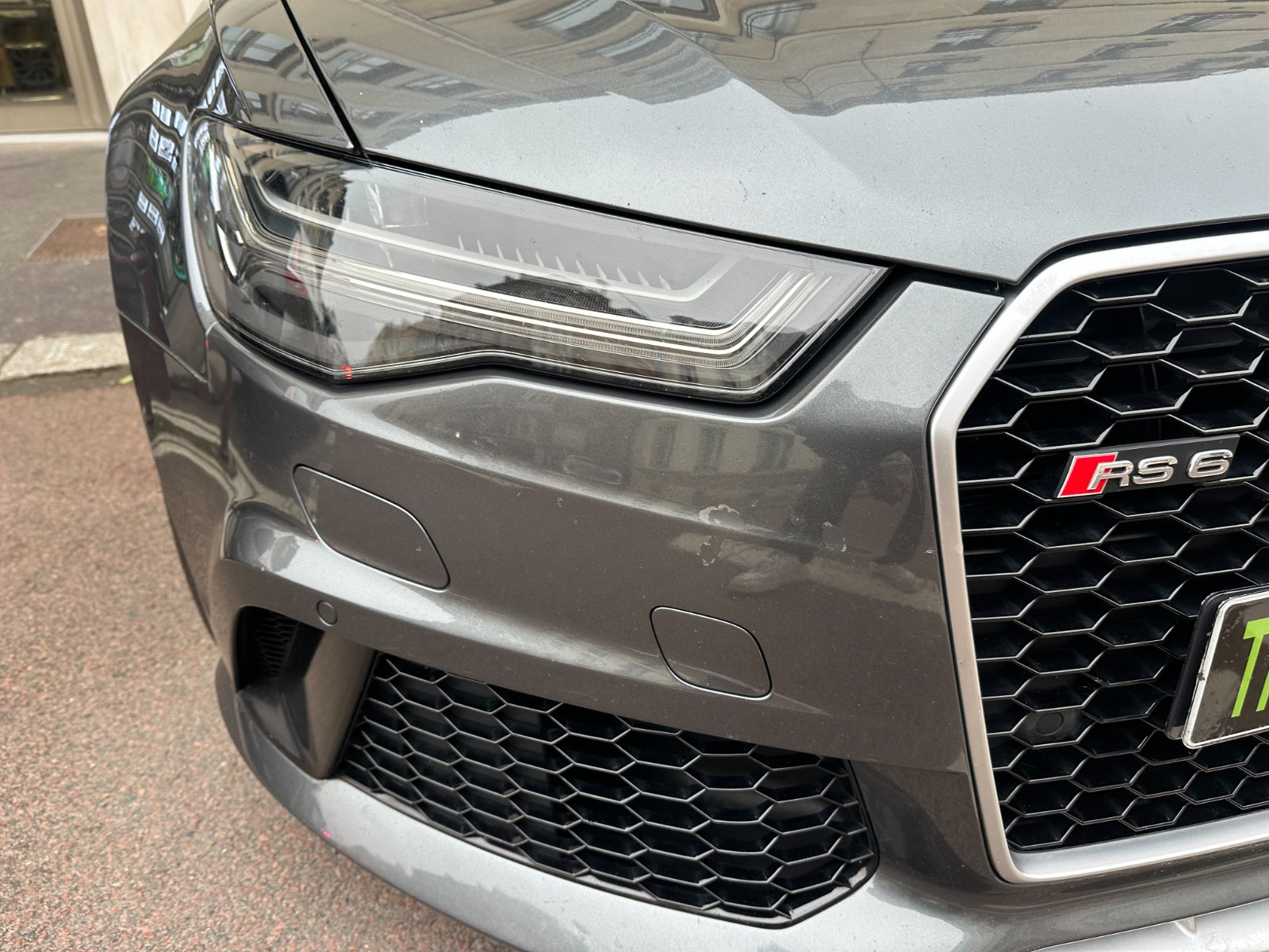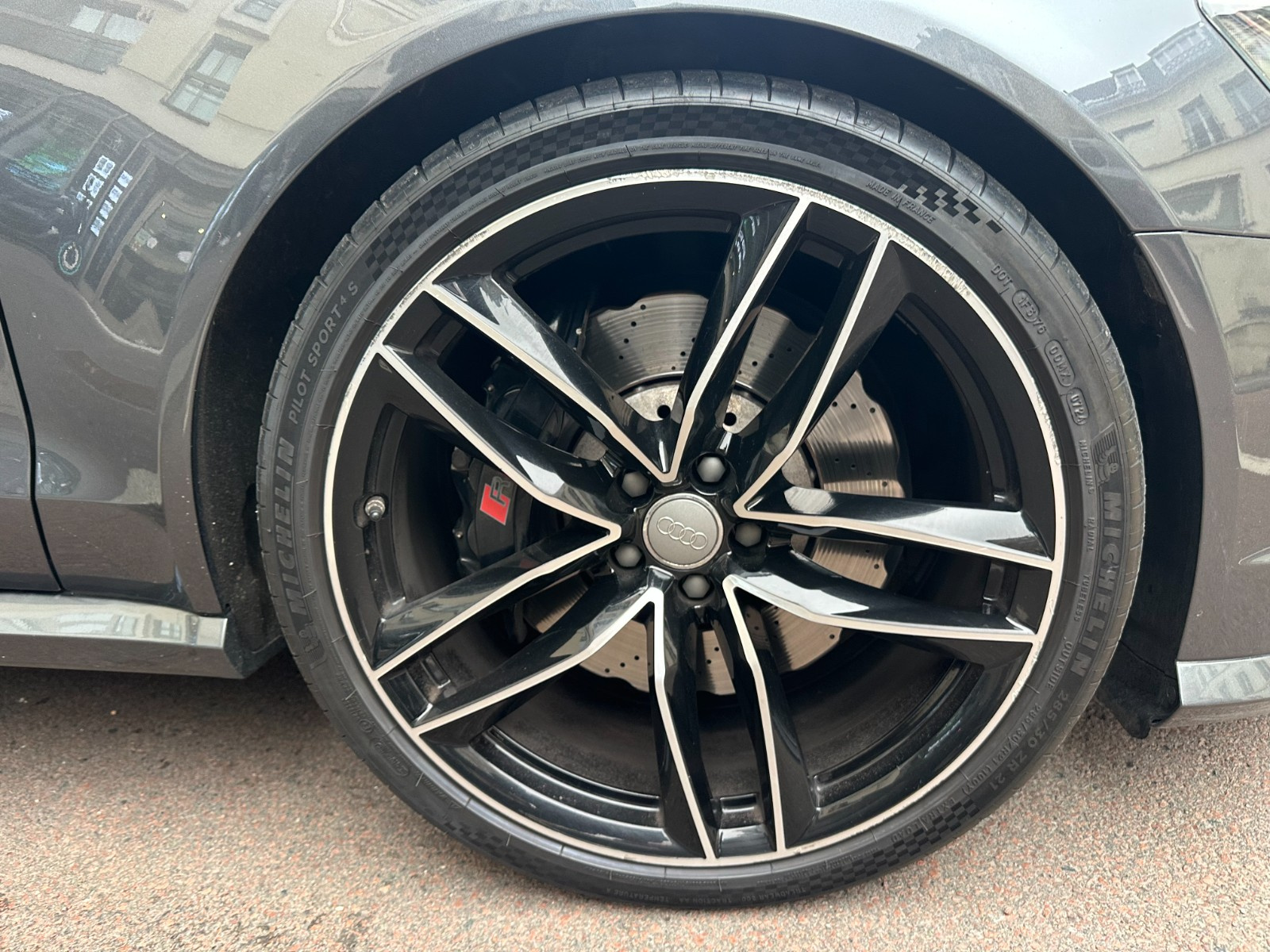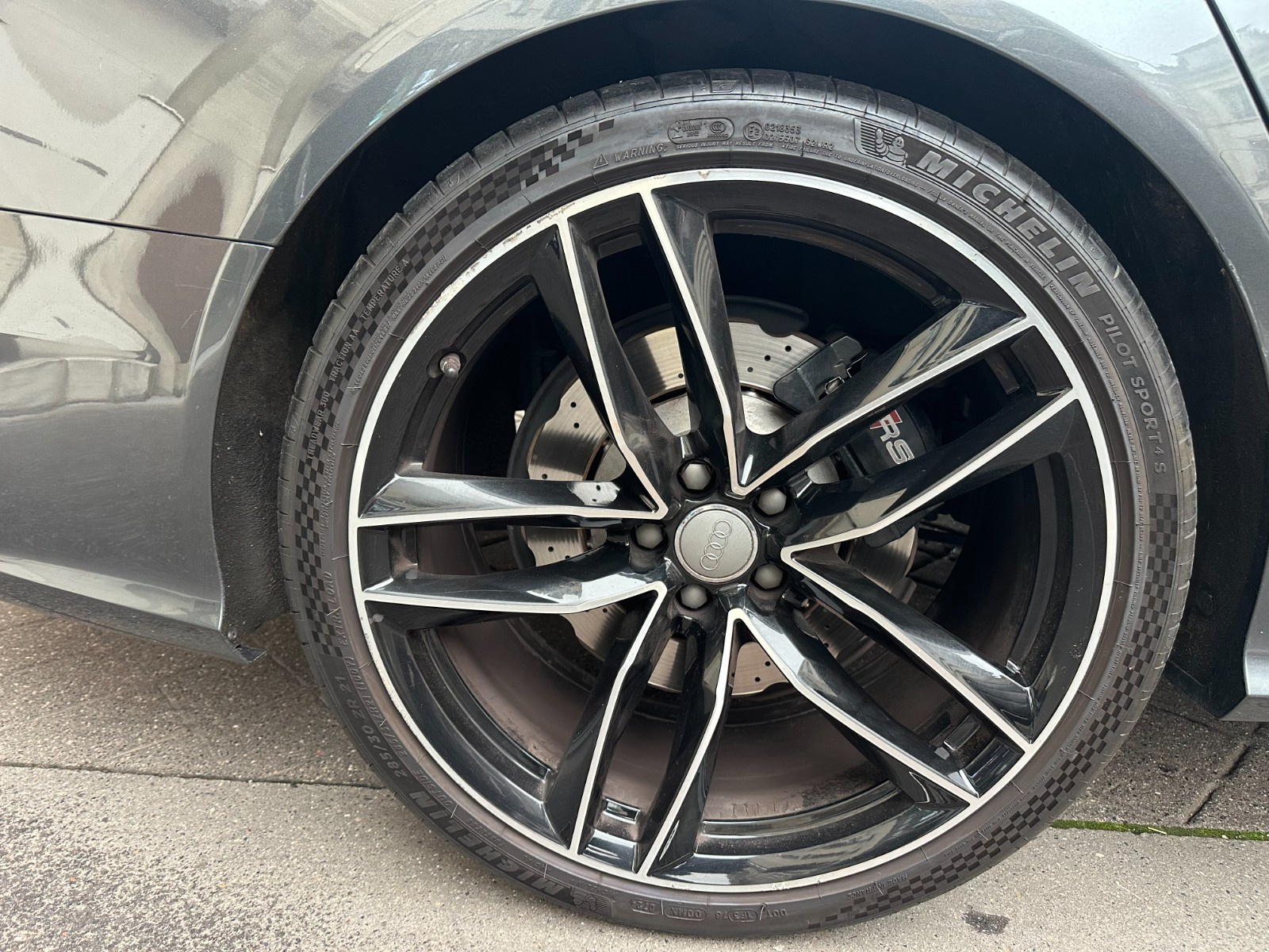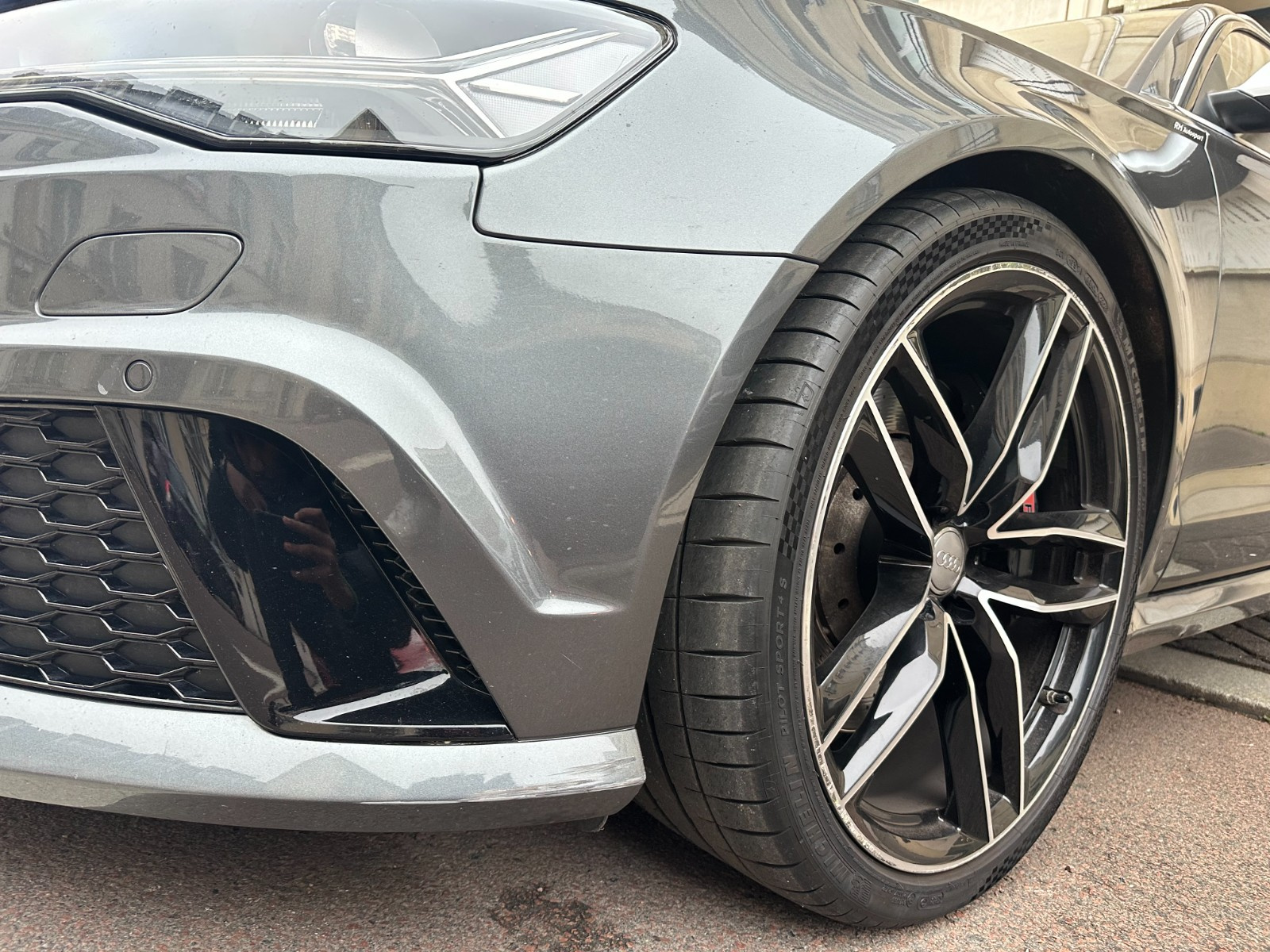 Inscription « RS6 » sur la calandre, le capot de coffre, les étriers de frein AV, le volant Sport en cuir et le tachymètre