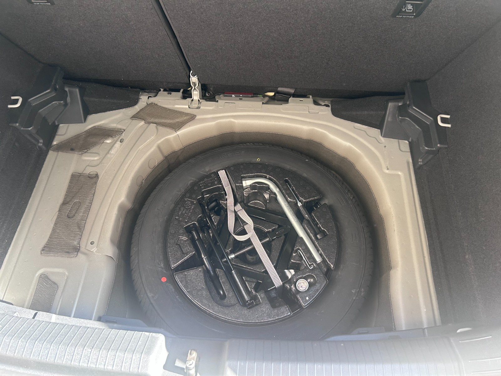 Roue de secours 15’’ à encombrement réduit, outillage de bord et cric (vitesse limitée à 80 km/h)